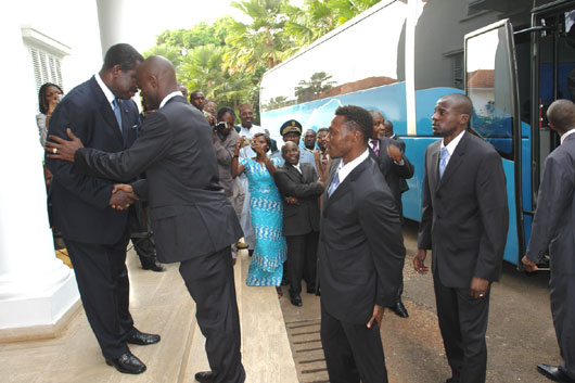 He thus transmitted the congratulations of President Paul Biya and of the entire nation, which promises to continue to give them all the support they need to soar to higher in up-coming competitions like the African Nations Cup billed for 2010 in Angola.