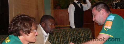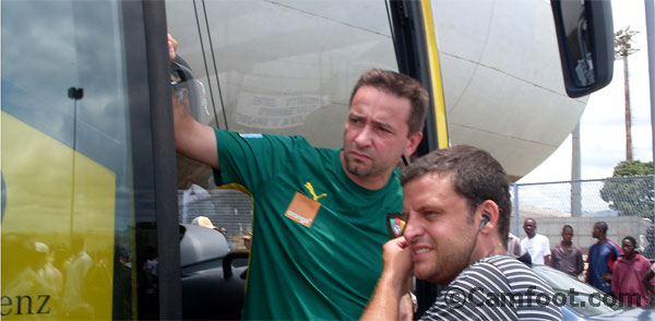 Alexandre Ribeiro : On parle du match à Libreville, mais il y en a 4 à gagner. Le Cameroun doit être en Afrique du Sud, se sera vraiment dommage qu’il y ait une coupe du monde en Afrique qui se déroule sans le Cameroun. Je travaille depuis longtemps avec le Cameroun, j’aime les Lions indomptables, c’est pourquoi j’ai accepté de travailler. J’aurais refusé si c’était une autre sélection, j’ai trop d’affinités avec les gens ici. Je suis d’origine portugaise, mais mon vœu le plus cher c’est que se soit le Cameroun qui aille en coupe du monde ; et même si le Portugal n’y est pas, je serais l’homme le plus heureux.