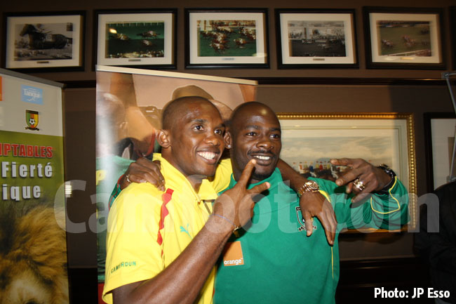 Samuel Eto’o et Alexandre Song y étaient avant nous et s’entretenaient au fond de la salle. Le premier, plus entreprenant semble essayer de convaincre le « Gunner ». Notre présence va obliger les deux hommes à se retirer dans la pièce voisine, l’« Union Castle Room ».