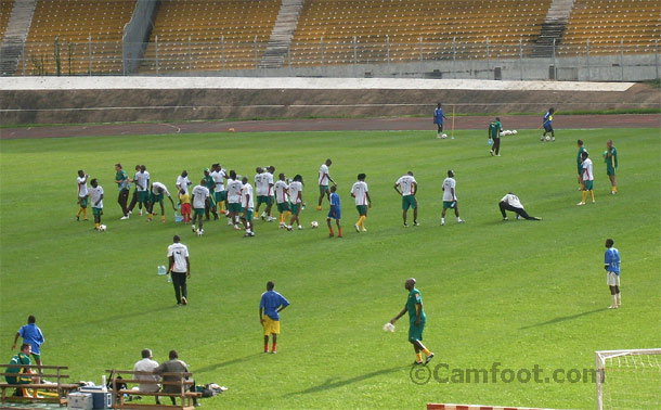 La préparation se poursuit avec le même sérieux que le premier jour. La dernière séance d’entraînement en terre Camerounaise a eu lieu cet après midi au stade Omnisports Ahmadou Ahidjo. La séance se voulait à huis clos parce que c’est au cours de celle-ci que l’équipe-type devait se dégager.