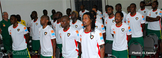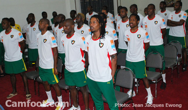« Vous l’avez tous dit et j’aurais pu rester les bras croisés. Je suis content d’entendre le capitaine parler de la détermination de son groupe. Mais nous devons rester très vigilants, parce que les adversaires ne nous feront pas de cadeaux. Nous nous rappelons tous de ce que j’appellerai des incidents à la suite de la déception de l’élimination la dernière fois. Comment les camerounais avaient mal pris la chose. Depuis quelques mois, on sent une occasion de redorer notre blason. Une coupe du Monde sans le Cameroun, c’est comme une sauce sans saveur, sans le sel. Nous sommes à la veille du dernier grand tournant vers la prochaine Coupe du Monde. Premier match que nous devons gagner. On sent dans tous vos propos que la synergie de la victoire s’est mise en place. Pour notre marche glorieuse vers la première Coupe du Monde en Afrique. On revient d’Afrique du Sud, où ils nous ont dit que le Cameroun est la seule équipe Africaine qui peut gagner la coupe du Monde.