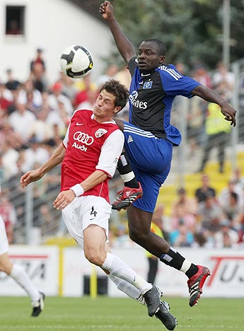 – C’est sur un centre de Thimotée Atouba que Hambourg va ouvrir la marque et s’installer définitivement dans le camp du MŠK Žilina. Petric s’élevait plus haut que tout le monde pour ouvrir le score à la 15e minute après un bon travail de l’international camerounais, venu de la gauche. Hambourg va saler l’addition par Olić (45+ 1) avant de voir son avance reduite à 21 minutes de la fin par Rilke.