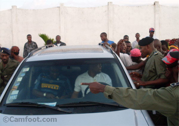 Les supporters des Lions indomptables au dernier coup de sifflet du Tunisien Bennaceur Karim ont bien voulu célébrer leurs idoles. Ils sont allés nombreux attendre le capitaine Samuel Eto’o Fils et ses camarades au hall de la tribune présidentielle espérant qu’ils vont sortir des vestiaires par le portail à l’extrême gauche de la tribune présidentielle comme toujours. Les responsables de la sécurité de l’équipe nationale qui craignaient les débordements, ont préféré faire entrer le bus à la main courante, soit le même trajet qu’emprunte le Chef de l’État lorsqu’il vient présider la finale de la coupe du Cameroun.
