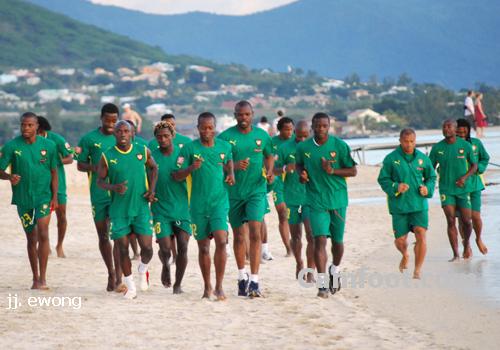 Hier à Maurice, un décrassage (pour ceux qui avaient joué la veille ndlr) et un léger entraînement (pour ceux qui n’étaient pas sur le terrain contre Maurice) étaient organisés à 17H00 sur la plage en compagnie du staff technique. Pour l’occasion, Samuel Eto’o fils était ménagé pour avoir reçu un coup au genou lors de la confrontation contre l’île Maurice.
