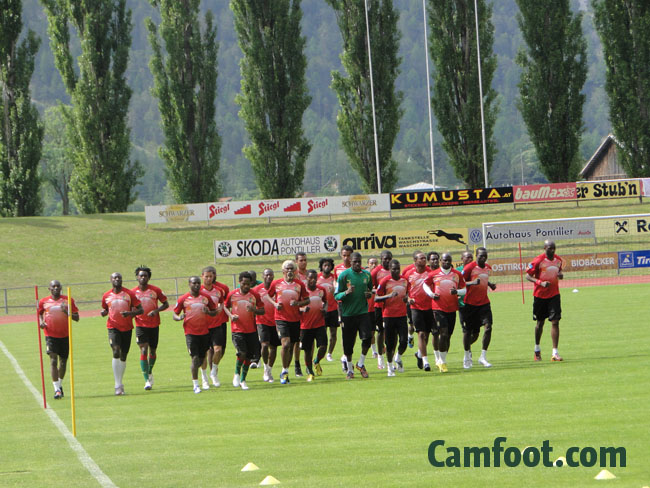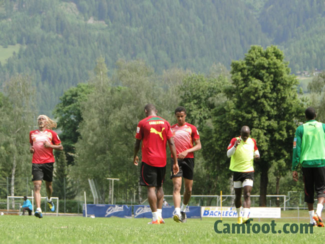 Les lions indomptables du Cameroun se sont entraînés pour la dernière fois sur la pelouse de la Dolomiten Stadion. Une occasion pour le staff technique d’opérer quelques derniers réglages qui pourront influencer la liste des 23 qui sera dévoilée le Samedi 29 Mai 2010 à 20H00.