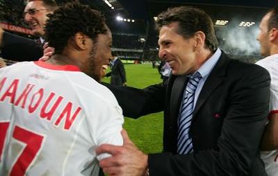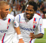 1. Makoun buteur avec Lyon félicité ici par son coach Claude Puel