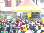 A l’image de ces supporteurs, la pilule de la défaite face au Japon passe difficilement chez les habitants de Douala autant que ceux des autres villes. Et pourtant, avant le début de la rencontre, c’est une marées humaine qui s’est retrouvée au quartier Bali, à Douala , pour vivre ensemble l’évènement. Le tout a été organisé par une compagnie de téléphone mobile. Ici, le public a pris place dans des gradins en planches. Au fond, un écran géant diffuse la rencontre.