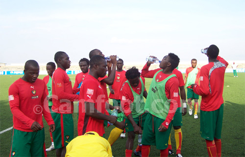 Fomen Charley Roussel et Owona Brice qui n’ont pas pu s’entraîner avec le reste du groupe hier pour cause de maladie ont bel et bien repris cet après-midi. Si Fomen a totalement repris, ce n’est pas le cas pour Owona Brice qui a travaillé à côté, mais Dr Boubakary Sidiki ; le responsable de l’encadrement médical a confirmé que l’attaquant des Lionceaux va tenir son poste demain. Alain Wabo a travaillé les situations devant les buts de l’adversaire parce qu’il est conscient que c’est en marquant les buts que nous allons passer ce tour. L’équipe a également travaillé la cohésion, et la mise en place d’un projet de jeu, parce que le reproche que tout le monde fait à l’équipe camerounaise dans cette compétition, c’est qu’elle n’élabore pas son jeu, elle brille par les dégagements à l’emporte-pièce.
