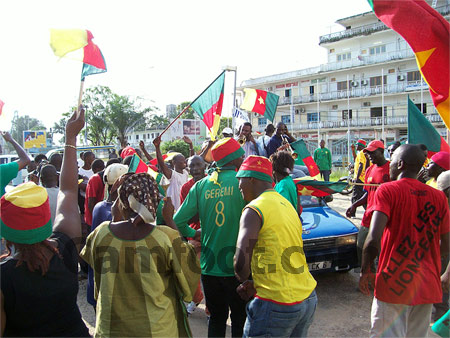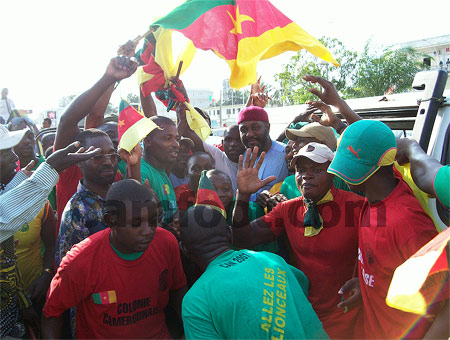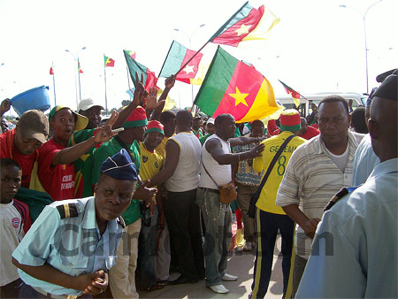 Les supporters camerounais à Pointe-Noire attendant la sortie des joueurs