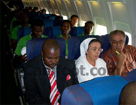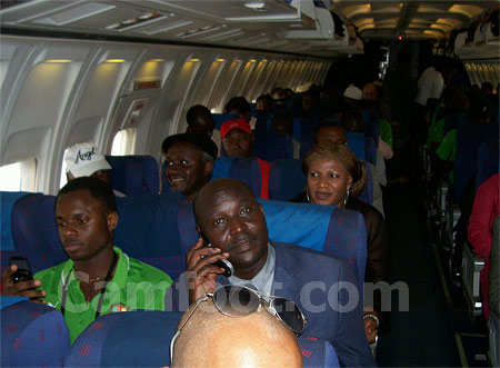 Il était 15h lorsque l’avion de la compagnie congolaise, Air Congo a quitté l’aéroport international de Douala avec à son bord la délégation Camerounaise en partance pour Pointe-Noire. Il faut dire que le départ était plutôt prévu pour 13h. Ce gros retard était dû au petit désagrément qu’a connu la délégation Zambienne. Les juniors Zambiens qui revenaient d’Afrique du Sud où ils observaient leurs mises au vert ont été surpris d’apprendre qu’il fallait encore débourser la somme de dix mille francs pour chaque joueur, pour avoir une place dans l’avion. Cet argent représentait les frais de timbres. La délégation Zambienne a dit n’avoir pas prévu cet argent. Il a fallu une longue discussion entre les responsables de l’aéroport et les responsables Zambiens.