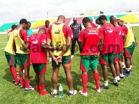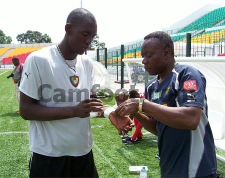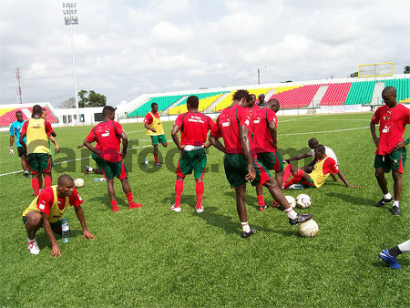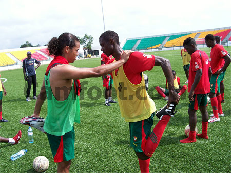Après la traditionnelle prière qui marque le début de chaque séance d’entraînement, les lions sont passés aux choses sérieuses. La partie échauffement a été coordonnée par le coach adjoint, Engelbert Mbarga Ondoua. Les joueurs ont tout de suite constaté qu’ils ont à faire au gazon synthétique. Certains ont tout de suite manifesté leur gêne, notamment les joueurs qui évoluent au championnat Camerounais. ‘’ Ce gazon est bizarre, je ne sais pas si je peux jouer sur un terrain pareil ‘’ s’exclame, Leony Kweuké attaquant de Cintra Fc de Yaoundé. David Eto’o, le frère de l’autre ne trouve pas de problème ‘’ Dans mon club en Espagne, nous avons des terrains avec du Gazon synthétique, je crois qu’il n y a pas de problème, il faut simplement avoir des chaussures adaptées ». La séance de cet après-midi a été consacrée selon les entraîneurs à l’éveil et surtout au travail devant les buts. C’est ainsi qu’ils se sont exercés à tirer les coups francs et même les tirs au but.