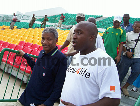 Le ministre des sports et de l’Éducation physique, Augustin Edjoa, l’ambassadeur Itinérant Roger Milla, Monsieur Hanack Tonyé, représentant de la présidence de la république dans la délégation Camerounaise, sont venus voir à l’œuvre les jeunes lions avant leur confrontation de demain contre les pharaons d’Egypte. Le ministre et ses hôtes dans leur conversation ont longuement parlé du nouveau stade de Pointe-Noire. ‘’ C’est un très beau stade, c’est un cadeau à la jeunesse de ce pays de football » à dit Roger Milla, meilleur footballeur africain du siècle.
