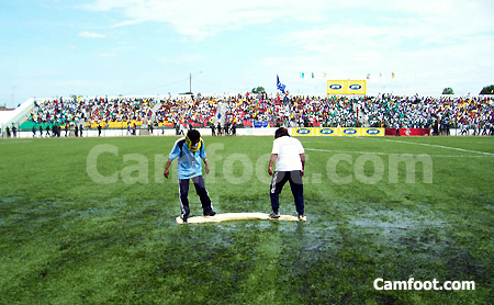 La rencontre des lionceaux du Cameroun a démarré à 16h 30′, c’est-à-dire une demi heure après l’horaire prévu. Le retard était dû au fait que le gazon synthétique du stade municipal n’absorbait pas l’eau, après la forte pluie s’étant abattue sur la ville de Pointe-noire le matin. Les employés du stade ont dû recourir à des éponges pour limiter les dégats.