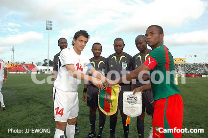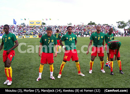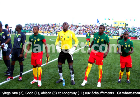 1-Jules Goda, 6-Bondoa, 12-Fomen, 2-Eyinga, 3-Koulou, 14-Mandjeck, 11-Kongnyuy ( 10-Pehn, 75, 13-Djidda ( 5-Mbilla, 65′), 9-Moukandjo, 8-Kweuke, 7-Morfaw. Reserves: 15-Ndjama, 17-Eto’o, 16-Beyokol, 4-Yanga.