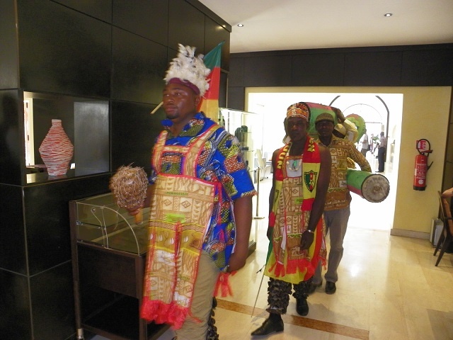La célèbre mascotte des Lions Indomptables, Ngando Picket n’a pas digéré les récentes prestations des Lions Indomptables à cette Coupe d’Afrique des nations (CAN) en Guinée Equatoriale. Le supporter camerounais s’est invité au Sofitel President Hotel ce matin et chaque fois qu’il a rencontré un joueur de la sélection nationale, il n’a pas manqué l’occasion d’exprimer sa colère envers le coach Volker Finke dont il critique amèrement les choix tactiques notamment, le fait que Clinton Njié demeure sur la touche.