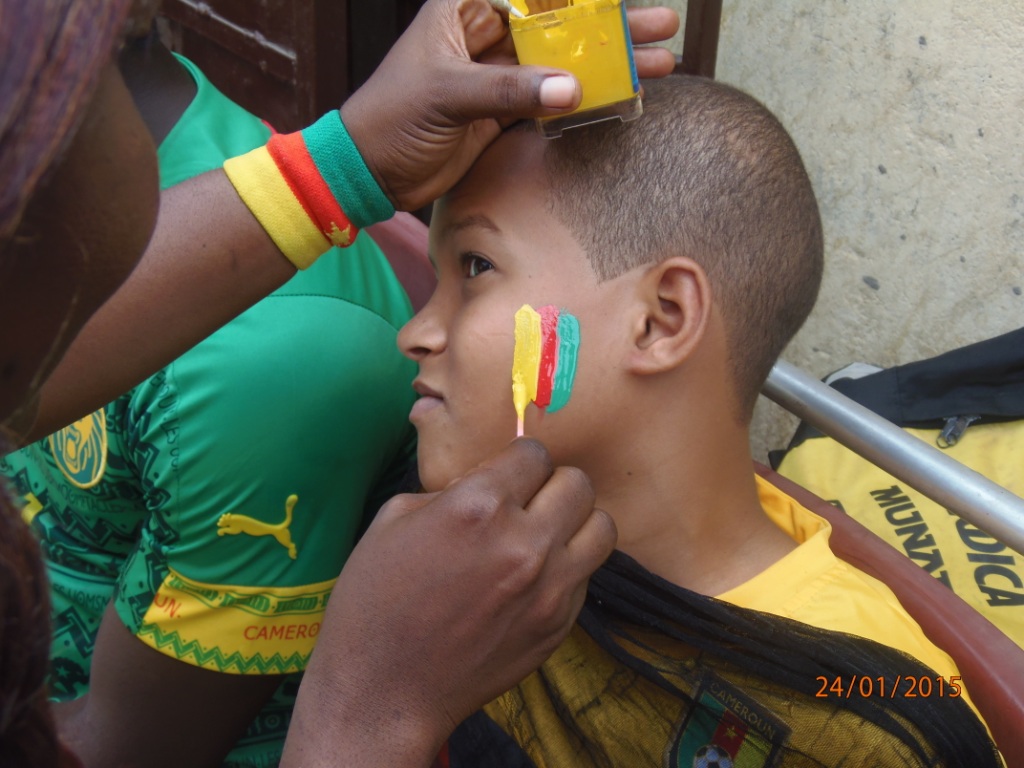 Justin Kernahan, 12 ans, est Camerounais basé ici à Malabo. Il se faisait tatouer les joues au moment où nous arrivions sur le terrain, avant de prendre la direction du stade où il ira passer la journée pour attendre le coup d’envoi de la rencontre à 20h. En dépit de la première sortie manquée du Cameroun, ce jeune écolier n’en démord pas. «J’attends une victoire du Cameroun sur le score de 2-0. les buts de Moukandjo et Aboubakar», pronostique-t-il. «Et je sais qu’aujourd’hui on va gagner. Même si on ne gagne pas, je vais continuer à les supporter», ajoute Justin.