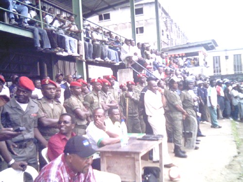 L’impressionnant déploiement des spectateurs annonçait une grosse affiche : Union de Douala –Coton de Garoua. Le public avait répondu présent. Près de 10.000 spectateurs pour assister au match comptant pour les 1/2 finales aller de la Coupe du Cameroun. Observer cette grande foule un mercredi au stade Mbappé Leppé est un record. Malheureusement, le public n’aura pas quelque chose à se mettre sous la dent. L’enjeu a certainement tué le jeu.