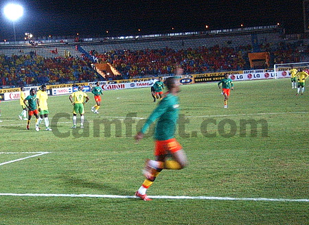 De façon générale, le joueurs ont paru nerveux, habités par la peur de mal faire et avaient du mal à se positionner sur le terrain. La défense centrale a mis une dizaine de minute à trouver se réglages et les milieux de terrain hésitaient à aller presser haut l’adversaire. Le Bréil ne voulant pas faire le jeu, on a assisté à un début de match laborieux, avec de imprécisions techniques. Il faut en effet attendre la 12è minute pour voir une belle remontée de balle collective camerounaise terminée par une frappe manquée de Djemba.