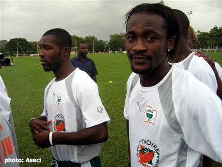 A l’intérieur, l’on peut apercevoir ici et là, quelques éléments des forces de sécurité. Le temps est clément dans ce beau temple de l’ASEC. Hormis la presse nationale, celle venue de l’étranger assiste à cette séance. Un confrère camerounais y prend également part. Sur le terrain, presque tous les professionnels sont présents. Entre autres, Drogba Didier (pour lequel quelques journalistes britanniques ont effectué le déplacement), Aruna Dindané, Zokora Didier, le capitaine Cyril Domoraud, Boka Arthur (remis de ses bobos), Kolo Habib, Kalou Bonaventure et Gnanhouan Gérard.