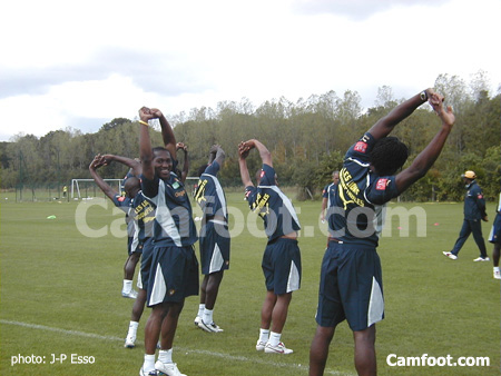 Absents : Etoo, Geremi, Matoukou, Souleymanou. Ils devaient arriver au cours de la journée.