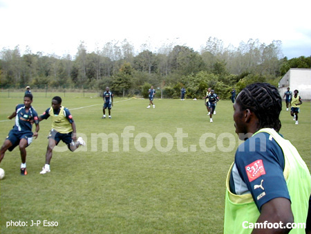 Après un « taureau » pour détendre les muscles et lancer l’entraînement, les joueurs de champ ont entrepris un footing pendant un bon quart d’heure. Jacques Songo’o lui, préparait ses gardiens EBEDE et BEKONO à un atelier spécifique sur un autre terrain. Souleymanou, qui a livré son match de championnat la veille en Turquie était attendu pour la séance de l’après-midi.