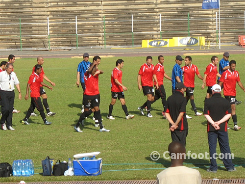 Arrivés dans la chaleur accueillante de l’aéroport international de Garoua à bord d’un vol spécial, les égyptiens du National Al Ahly du Caire, flanqués des autorités consulaires et de la meute de journaliste venus des Pyramides, ont effectué une séance d’entraînement de grande envergure dans la cuvette de Roumdé Adjia. Ce samedi après midi, sous une chaleur somme toute clémente (environ 28°C), Abou Treika et les siens ont fait fureur sur l’aire de jeu, visiblement à leur aise.