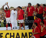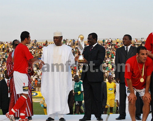 Sur le podium, à la fin du match, le Pm entourés de Issa Hayatou, président de la Caf et de Thierry Augustin Edjoa, le ministre des sports et de l’éducation physique (Minsep) du Cameroun. Visiblement généreux dans l’âme, le Pm à qui Issa donnait des médailles pour accrocher des joueurs faisaient, de temps en temps, la passe au Minsep. Mais curieusement, la majorité des joueurs de Cotonsport préféraient plutôt se faire accrocher au cou une médailles des mains de Issa Hayatou ou du Pm. Conséquence, Augustin Edjoa était obligé de rester, de longues secondes, avec des médailles dans les mains, attendant en vain un preneur. Les joueurs égyptiens quant à eux n’ont pas boudé le Minsep, en se faisant accrocher fièrement les médailles autour du cou.