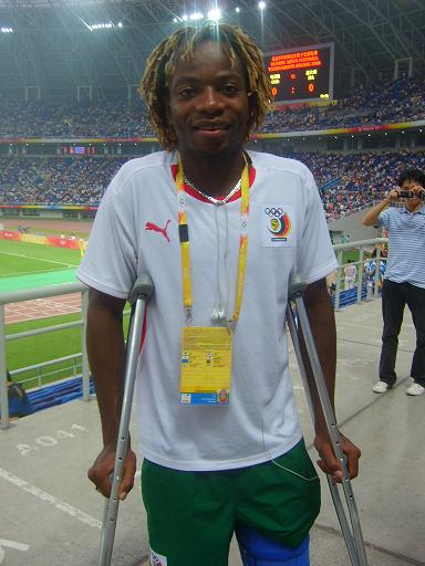Alexis Enam: J’ai un souci avec mon genou au niveau de la rotule. J’avais déjà eu un problème en championnat (Tunisie ndlr) qui s’est nettement amélioré puisque j’avais recommencé à jouer. Après le match contre le Honduras, j’ai commencé à ressentir un petit étirement sur le coté externe du genou gauche, et après des examens médicaux, on a décelé des fissures au niveau de la rotule d’où la sortie de la synovie qui bloque mon genoux et m’empêche de marcher normalement.