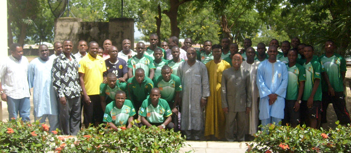 Le représentant du gouverneur est allé dans le même sens que ceux qui l’ont précédé. ‘’ Cette région vous a toujours supporté et continuera à vous supporter, faites comme vos ainés qui ont joué la Can 2009 et la coupe du monde junior la même année. Redorer le blason de la maison Lions indomptables parce que c’est le premier match d’une sélection nationale après le fiasco de la coupe du monde ‘’. Le chapitre des discours a été clos par celui du représentant du ministre des sports et de l’éducation physique, Oumarou Tado. L’envoyé de Michel Zoah a remercié les autorités administratives de la région avant de s’adresser aux joueurs ‘’ Le ministre des sports me charge de vous dire qu’il est attentif à tous vos problèmes, vous avez son soutien. Dans 4 ans il y aura une coupe du monde au Brésil c’est sur vous que le Cameroun compte, vous constitué la pépinière du football camerounais ’’. Le secrétaire général de la Fecafoot a annoncé aux joueurs le montant des primes en cas de victoire, il s’agit de 500.000 frs CFA par joueur. C’est par la photo de famille qu’Etsil Edmond a quitté la tanière en souhaitant bonne chance aux jeunes fauves.