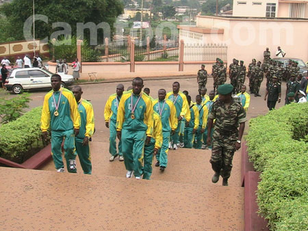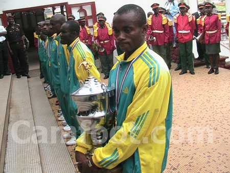 De retour d’Ouganda où ils ont participé à la septième édition de la coupe d’Afrique, les joueurs de la sélection nationale des armées ont reçus un accueil chaleureux des autorités. Un tour de ville a été organisé pour présenter le trophée aux populations de Yaoundé.