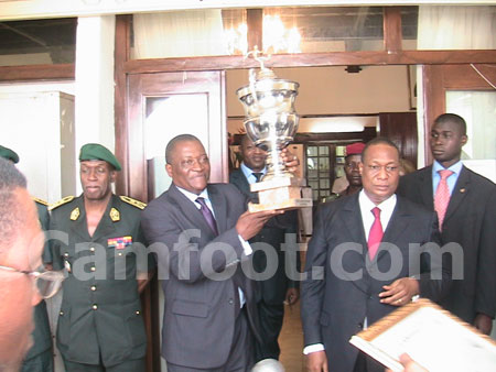 «En ramenant une fois de plus le précieux trophée au pays, vous avez confirmé la vocation de gagneur du Cameroun. Vous avez porté haut le drapeau du Cameroun. Vous avez fait votre devoir avec honneur et fidélité. Vous méritez toutes les félicitations et les encouragements du haut commandement ainsi que la reconnaissance des sportifs et des militaires camerounais… ». C’est un extrait du discours prononcé par Remy Zé Meka, ministre délégué à la Présidence chargé de la défense, ce mardi 16 décembre 2008, à l’occasion de la réception de l’équipe nationale de football militaire et de la présentation du trophée « Blaise Compaoré » de la Camfoot (coupe d’Afrique militaire de football, ndlr), édition 2008, remporté à Kampala.