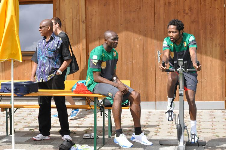 Ce matin, les lions étaient divisés en deux groupes. Le premier composé par Samuel Eto’o fils, Enoh Eyong, Stéphane Mbia et Jean II Makoun a travaillé sur les spécifiques. Des exercices bien dosés pour remettre en condition les quatre internationaux. Le deuxième groupe était dans un premier temps sous les ordres du préparateur physique avant de se mettre à la disposition de Finke qui, comme hier, a allié travail de précision, de concentration et de spontanéité. Tout ceci dans une ambiance ludique.