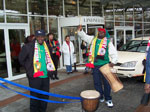 10h: Lindner hôtel – Peu ou pas de joueurs dans le hall; tout juste quelques supporters qui entament une danse traditionnelle camerounaise rythmée sur les sonorités de tam-tams. Quelques membres de l’association Kellerun sont là avec photos et posters à faire dédicacer. Ce sont les quelques-uns qui ont pu se libérer de leur travail pour venir jusqu’à Leipzig pour ce match si particulier pour les Allemands tous habillés du maillot vert des Lions.