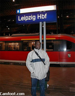 Arrivé en gare de Leipzig Hauptbanhof vers 22h30, je suis accueilli par mon collègue Stephen Sunou, venu de Francfort. Il y a rencontré le groupe camerounais dans la matinée et me confirme que tout le monde est là, exception faite du coach Winnie Schäfer, de l’ambassadeur Roger Milla, du capitaine Rigobert Song et Bill Tchato qui devaient être retenus à Francfort pour une émission de télévision, Bayerische Rundfunk. Éto’o et quelques autres devaient arriver directement à Leipzig.