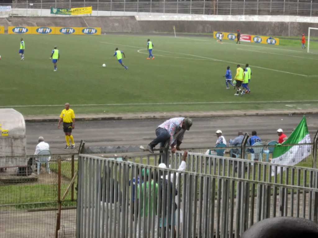Dans les gradins on pouvait observer une affluence inhabituelle. A la tribune d’honneur était au première loge le président Michel Abena de Renaissance qui s’est offert en spectacle en escaladant la porte de la tribune présidentielle pour se rendre dans les vestiaires à la mi-temps, avant de proférer des menaces au portier. L’entraîneur Djepnang a eu du mal à composer son équipe avec ses meilleurs joueurs (Bassilikin et Libih Thomas) convoqué en sélection nationale pour le match des lionceaux contre la Sierra Leone (1–1).