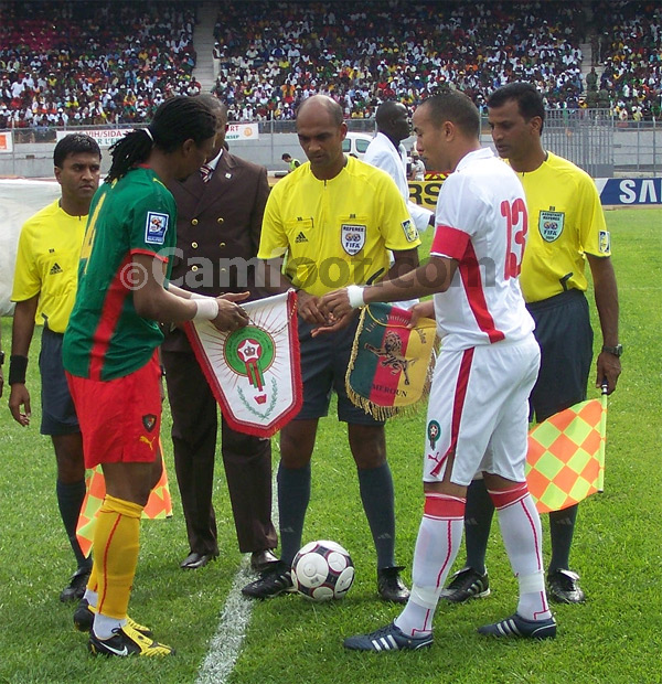 Le sociétaire de Bétis Séville en Espagne est ovationné. Il est imité par Enoh Eyong. Qui, une minute plus tard, fait apprécier son toucher de balle. Le jeune milieu de terrain des Lions indomptables démarre en trombe dans sa moitié de terrain. Mais, au denier moment, il est fauché à 25 mètres des buts. Une agression qui l’empêche de servir Samuel Eto’o et Paul Alo’o Efoulou très peu ravitaillés. Le coup franc accordé par l’arbitre central mauricien ne rapporte rien. La combinaison Njitap-Womé échoue sur le mur défensif marocain.