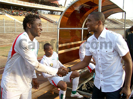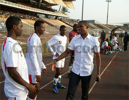 Il y a quelques jours, les juniors camerounais avaient brillamment disposé du Canon de Yaoundé sur le score de 2-0. Un match qui avait été assez couru, avec la présence très remarquée du goleodor camerounais de Barcelone, Samuel Eto’o Fils. Ce dernier en vacances au Cameroun, avait démontré beaucoup d’intérêt à cette jeune formation des juniors au talent remarquable. Poignées de main ça et là, bonnes tapes d’encouragement, Eto’o fut pour ainsi dire disponible. Une présence bien reçue par les jeunes Lions, qui ont bien besoin d’ondes positives pour accomplir la tâche qui les attend en terre congolaise.