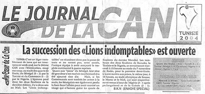 Le journal national « LE SOLIEL » (qui est au Sénégal ce que Cameroon-Tribune est au Cameroun) titrait dans son édition du 09 février 2004 No 10106: » LA SUCCESSION DES LIONS EST OUVERTES « . On pouvait lire sur ses colonnes: (…c’est un léger tremblement de terre qui est intervenu ce week-end à Tunis après l’élimination par le Nigeria 2-1 du Cameroun…Les Lions Indomptables ne réussiront pas la passe de trois et ne seront pas cette année la seule équipe à avoir remporter le trophée continentale à 5 reprises… Mais si les Lions sont tombés les armes à la main, les Sénégalais ont perdu la face dans l’affaire pour avoir montré un visage qui n’honore guère les quarts de finalistes du dernier mondial…)