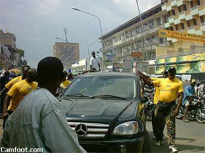 Après cette brève cérémonie, la caravane s’est ébranlée dans les différentes artères de la ville de Douala. C’est une foule en délire qui s’est alignée le long du cortège pour acclamer le »FILS DE NKONMONDO ». L’ambiance a été la même de Bali à Akwa où devait se dérouler le deuxième acte de la matinée. Le siège de MTN (société de téléphonie mobile au Cameroun) a servi de cadre à la conférence de presse donnée par le ballon d’or africain 2003. Les médias nationaux ont passé en revue les différents aspects de l’actualité concernant l’hôte du jour.