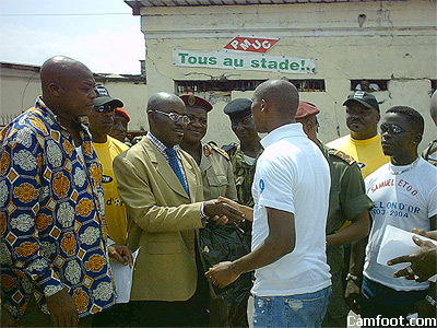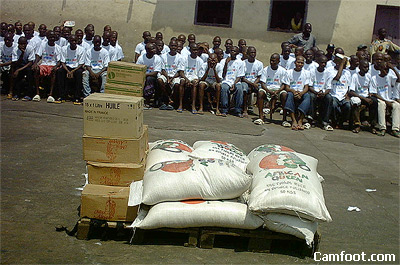 NEW-BELL, Douala 08 juin 04 – Le goleador camerounais a remis hier matin aux détenus de la prison centrale de New-bell un don de matériels constitué des produits alimentaires. Geste symbolique au cours d’une cérémonie sobre qui marquait ainsi le premier acte d’une matinée mouvementée dans la capitale économique du Cameroun.