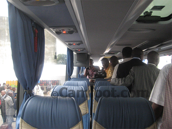 Suivra ensuite un voyage inaugural qui va mener le cortège au quartier Bali où la forte délégation prendra un cocktail. Les « bendskineurs » (conducteurs de moto taxi) et même les badauds vont tomber sous le charme du gros bus qui était garé au bord de la route. Certains ne vont pas hésiter à sortir leur téléphone portable pour prendre quelques images. Le bus des Lions indomptables marque Mercedes Benz châssis n° 248.996 ne pouvait pas espérer une meilleure présentation officielle ce mardi 3 mars 2009.