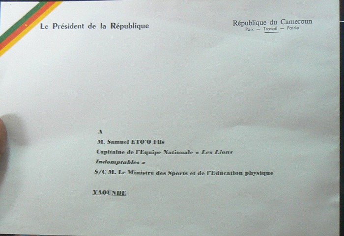 Bonjour à tous et heureuse année 2011. Permettez-moi avant de répondre à vos questions, de dire grand merci à notre président, son Excellence monsieur Paul Biya qui a tenu à me féliciter dans une lettre qu’il m’a adressée. Quand j’étais tout petit, je ne pensais pas que cela pouvait arriver un jour, mais grâce à vous, grâce à ma famille, grâce à mes efforts, nous voyons tous que cela est possible. Permettez-moi aussi de souhaiter une bonne et heureuse année 2011 à notre Chef de l’État, à lui et à sa famille, les vœux les meilleurs pour l’année 2011.