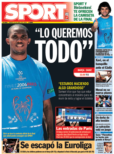 Samuel Eto’o est une pièce essentielle du Barça qui est sur le point d’être proclamé champion et qui aspire à remporter sa deuxième Coupe d’Europe de l’histoire du club. C’est pour cela que ni l’équipe technique ni les médecins du club ne veulent courir aucun risque avec lui à quelques jours de la finale de Paris.