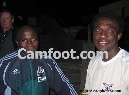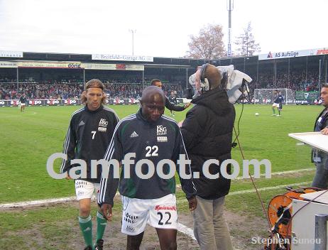 Camfoot.com: Auteur d’une passe décisive, vous avez été également très remuant sur les côtés … Avez vous l’intention de rester ou alors vous vous dites je suis de passage. Guy Armand Feutchine: Je suis un professionnel. Quand je suis au service d’une équipe, je donne le meilleur de moi même. Je commence à connaître mes coéquipiers, je sais a peu près quels ballons ou centres veulent les attaquants de pointes ainsi que le jeu pratiqué par ma nouvelle équipe. C’est ce que j’appelle l’intégration même si mon arrivée tardive et le calendrier de l’équipe nationale ne m’ont pas permis de le faire rapidement. En ce moment je suis sur la bonne voie malgré la blessure. J’apprends beaucoup d’eux aux entraînements car je suis le nouveau et j’espère rapidement entrer dans le système et participer à l’édifice. Quand je regarde le match contre Thoune, je pense quand même avoir tout donné malgré mon handicap physique causé par mon mal de genou.
