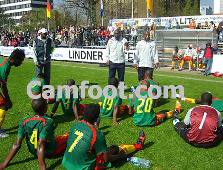 Camfoot.com: Quel bilan peut on dresser après cette participation au tournoi international de Düsseldorf?Richard Towa: Je peux tout simplement dire que cela a été très difficile pour nous, compte tenu de la qualité des joueurs que nous avions. Mais le plus important est que le Cameroun soit venu en Allemagne ; même si d’une manière générale on peut affirmer que sur le plan de l’organisation et de la préparation, les choses n’ont pas été comme elles devraient être. A côté de cela, il ne faut pas tout de même oublier qu’il y a deux jeunes qui sont rentrés en contact direct avec la Juventus de Turin, 2 autres avec le Werder de Brême et un avec le PSV Eindhoven. Je pense donc qu’il y a eu du positif et du négatif même si personnellement je n’ai pas eu le temps de m’impliquer un peu plus tôt.Francois Ngoumou et Richard Towa dans les tribunesCamfoot.com: Quand avez-vous exactement intégré l’équipe ?Richard Towa: J’ai été notifié officiellement un jour avant le tournoi par une correspondance du MINSEP. J’ai vu pour la première fois cette formation à l’œuvre le vendredi 6 Avril c’est-à-dire la veille du début effectif du tournoi. Après une séance d’entraînement il était clair et net que cette formation ne pouvait pas tenir tête aux gros calibres que sont le Bayern de Munich, le PSV Eindhoven pour ne citer que ceux là.Une séance d’échauffement dirigée par TowaFrancois Ngoumou à l’oeuvreCamfoot.com: Pourquoi n’avoir pas refuser cette mission alors que vous n’aviez jamais vu ces joueurs à l’avance ?Richard Towa: Écoutez très bien ce que j’ai à vous dire. Je suis Camerounais et ancien International. Rien que pour cela il est difficile de dire non à la nation. J’ai été contacté par SE Roger Milla qui m’a demandé de donner un coup de main à cette équipe, le ministre lui-même a demandé à Monsieur Ngoumou et moi de coacher cette formation à ce tournoi, malgré mes occupations je ne pouvais que rendre service à mon pays comme tout bon patriote. Je vais vous raconter un peu mon histoire. Si je suis aujourd’hui ce que je suis c’est grâce à l’équipe nationale. Je suis venu participer à un tournoi en Allemagne en 1988 avec les lionceaux. Précisément à Illerzel où nous étions amenés par Karl-Heinz Weigang (ndlr entraîneur des lionceaux de l’époque de nationalité Allemande). Et c’est grâce à cette participation que j’ai été détecté par le Fortuna Cologne qui m’a ensuite invité faire des tests qui ont été concluant. Et je ne peux pas cacher que je gagne ma vie aujourd’hui grâce à ce passage ici en Allemagne. Et ça été le cas pour certains de ma génération comme Alioum Boukar, Mabouang Kessack, Eyidi Emille, Mouyeme, Ndjang Sonday, Tchakounang et Olivier Djappa (meilleur buteur de deuxième division Allemande en 2001). Il faudrait donc que les camerounais sachent qu’à chaque sortie des jeunes il y a une opportunité pour le football Camerounais de s’enrichir et de se développer. C’est pourquoi je salue l’action de François Ngoumou qui a réuni ces jeunes en quelques jours pour que notre pays soit présent à ce rendez-vous international.L’avant match …. contre la Juventus de TurinQuelques consignes à la mi-tempsCamfoot.com: Sur le plan personnel est ce qu’il n’y a pas quand même un sentiment de frustration sachant que vous avez déjà atteint les demi-finales de ce même tournoi avec les jeunes d’Alemania Aachen ?Richard Towa: Je ne peux parler de frustration. Il y a eu des enseignements positifs et négatifs. Ceux qui croyaient au miracle savent que le football d’aujourd’hui ne ment pas. Nous avons quand même vu quelques joueurs qui pourront intégrer l’équipe de Jean Paul Akono. Comme je vous ai dit cette prestation n’enlève rien à mon image ici en Allemagne où j’ai déjà été 2 fois vainqueurs de la coupe et du championnat. Les organisateurs et le public ont été informé des problèmes administratifs qui ont empêché les vrais juniors de représenter convenablement notre pays. Je l’ai dit dès le départ, cette équipe n’avait pas les qualités requises pour participer à un tournoi de cette hauteur. Que ce soit sur le plan physique ou tactique, nous étions inférieurs. Avec le temps que nous avions, il était impossible de corriger ces manquements. Et on a senti qu’au fur et à mesure que les matchs s’enchaînaient, nos petits étaient fatigués. Ce qui s’explique bien évidement. Nous avions dans notre effectif des joueurs qui n’ont pas de club et ça ne pardonne pas face à des formations qui s’entraînent 10 fois en moyenne par semaines. Pour cela on peut tirer un coup de chapeau aux jeunes qui ont tout donné et surtout ne pas les en vouloir. On ne pouvait pas leur demander l’impossible. Par ailleurs, en participant à ce tournoi, nous avons donné la chance aux autres d’y revenir et notamment à la vraie équipe car les organisateurs s’étaient engagés à ne plus jamais inviter une équipe Africaine.Monsieur Nyassa Soleil, Vice président de la commision des compétitions internationales à la FecafootCamfoot.com: Quels enseignements tirer de cette aventure … si on peut l’appeler ainsi ?Richard Towa: Il faut voir les choses d’une manière positive. Un forfait aurait annulé toute possibilité à une équipe africaine d’y revenir. Quand on sait que des stars d’aujourd’hui comme Kuranyi, Podolski, Owen, Critiano Ronaldo, Richardson sont passés par ici, on ne peut pas se permettre le luxe de ne pas donner la chance à nos petits frères pour les prochaines échéances. Nous avons clairement signifié aux organisateurs que les lionceaux, les vrais joueront un grand rôle dans le futur de ce tournoi. Pour cela une bonne préparation s’impose car même les vrais lions juniors peu entraînés auraient eu des difficultés. Quand on vient à ce genre de tournoi, il faut prendre des disposit
