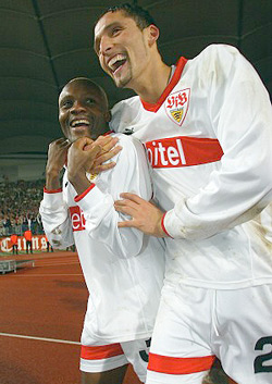 Branco: Je ne sais pas sincèrement, il y a un bout que je ne suis pas allé au Cameroun. Je pense cependant que le problème est d’ordre sportif et relié au différend que j’ai vécu dans mon ancien club de Frankfurt. Le bras de fer que j’avais eu avec cette équipe ne me permettait pas d’être régulier sur le terrain. A partir de là, l’entraîneur Schaeffer ne pouvait me convoquer; il me l’a signifié avec raison. Vous savez qu’il vit en Allemagne, à 50km de Stuttgart (Karlsruhe), connaît bien ce qui s’y passe. Je l’ai encore eu au téléphone il n’y a pas longtemps, il a tenu à me féliciter pour ma signature à Stuttgart. Ce fut d’ailleurs le première personne à m’appeler…vous vous rendez compte! Il m’a dit qu’il était heureux que je me retrouve là où je devrais être.