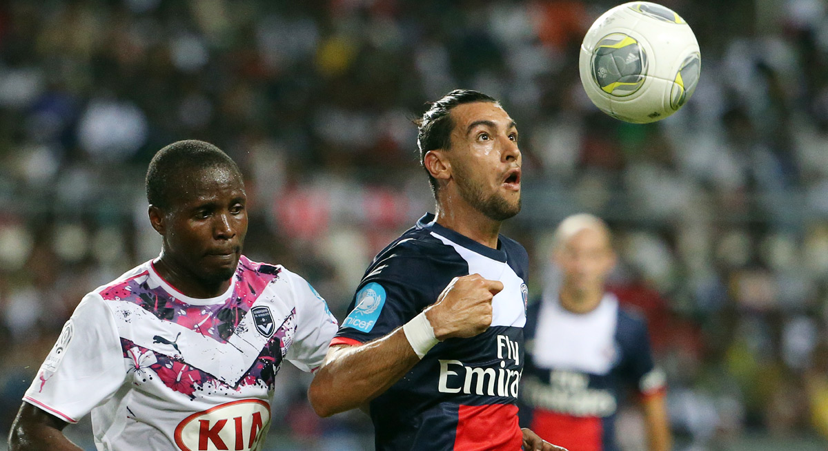 Bordeaux réagit immédiatement et de belle manière, Obraniak (21’), Saivet (23’) puis Biyogo Poko (24’) inquiètent tour à tour Sirigu. Le corner qui suit ne donne rien. La partie est rythmée, si Bordeaux était en difficulté dans le premier quart d’heure, ils connaissent un temps fort alors que l’arbitre indique une pause « boisson » (25 ‘). Une pause bénéfique aux Parisiens. En effet, Pastore élimine Obraniak pour lancer Lavezzi. Grég Sertic le reprend au dernier moment et reste au sol (29’). C’est une hécatombe pusique sur le corner qui suit, Obraniak et Lucas se percutent. Les deux se relèvent. Les duels sont montés d’un cran dans ce dernier quart d’heure de la première mi-temps. Sertic remplit parfaitement son rôle de dernier défenseur en annihilant les actions parisiennes, à l’image d’un débordement de Lavezzi (34’).