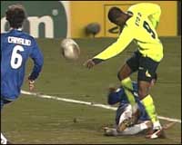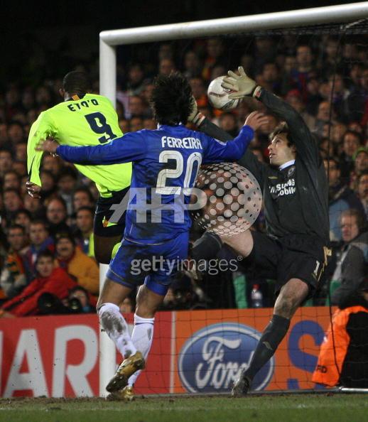Samuel Eto’o que tout le monde attend et dévore des yeux n’est pas à la fête dans ces premières minutes. Il amortit un ballon vers le quart d’heure de jeu, mais son action est stoppée par la position de hors-jeu de Deco. À partir de ce moment on commence à le voir, notamment sur ce centre de Messi qu’il aurait pu laisser pour Ronaldihno, mieux placé. La paire s’emmêle les crayons et les Blues se dégagent. C’est presque la 20ème minute. Le match n’est pas très animé, les équipes se surveillent, personne ne veut véritablement se livrer. Sur le deuxième téléviseur, il y a nettement plus de rythme, et déjà 2-0 pour l’Ajax devant l’Inter de Milan.