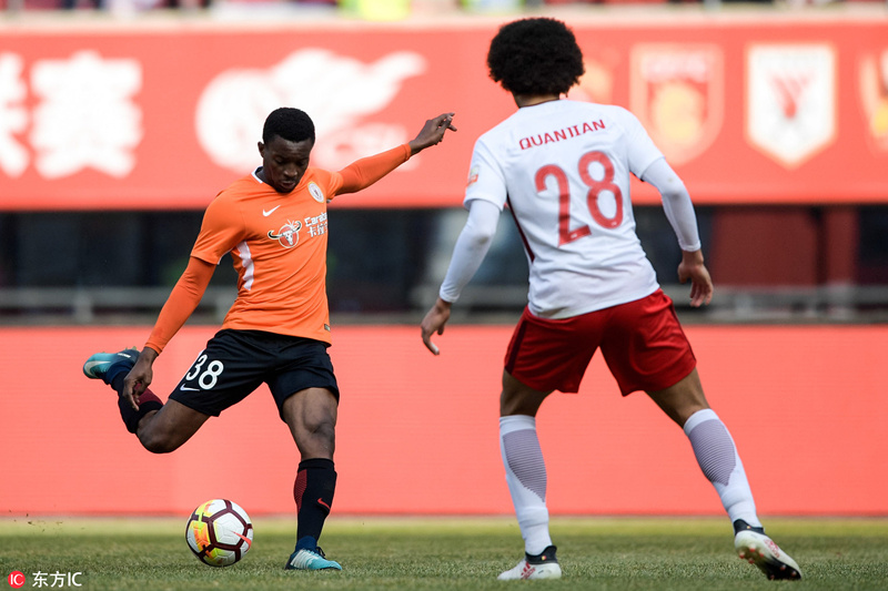 Le nouveau sociétaire de Beijing Renhe FC a livré son premier match de la saison ce samedi lors de la 2e journée du championnat d’élite de Chine. Il n’avait pas figuré dans la feuille de match de la précédente rencontre à cause de la rotation obligatoire due à la limite du nombre de joueurs non chinois. Mais l’attente en valait la peine puisqu’il a été de tous les bons coups.