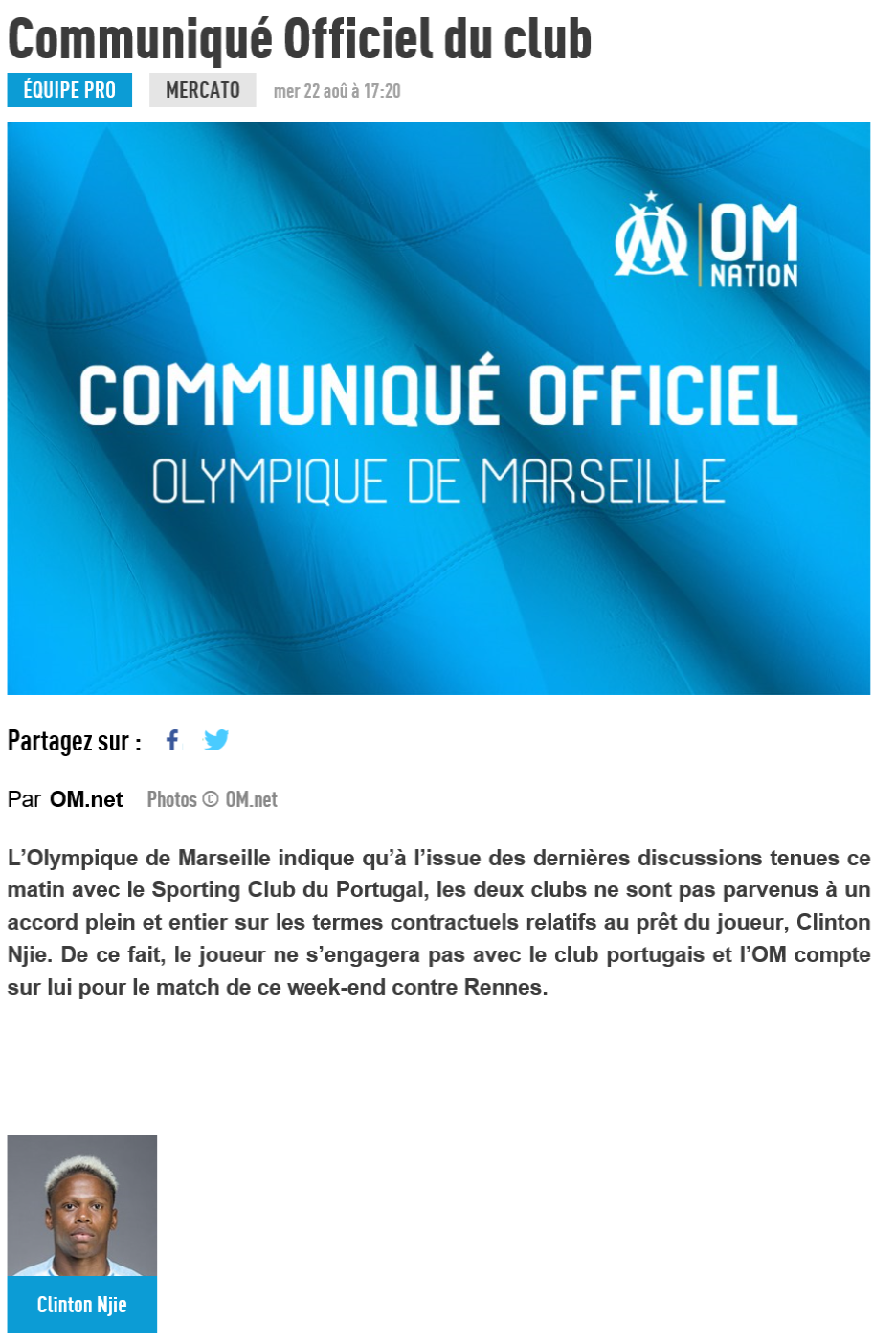 Lisbonne et Marseille s’étaient préalablement mis d’accord sur les termes de ce prêt non renouvelable et sans option d’achat. Mais les portugais, prétextant une défaillance physique quelconque, sont revenus vers l’Olympique de Marseille pour revoir les termes du contrat. Marseille, qui connait bien son joueur, a d’abord un temps accepté de se mettre à table, avant de constater que ce n’était qu’une technique pour transférer le joueur pratiquement pour rien.